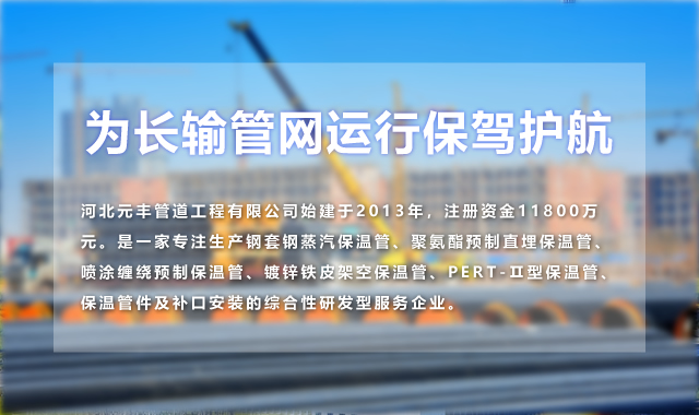 河北元豐管道工程有限公司始建于2013年,注冊資金11800萬元。是一家專注生產(chǎn)鋼套鋼蒸汽保溫管、聚氨酯預(yù)制直埋保溫管、噴涂纏繞預(yù)制保溫管、鍍鋅鐵皮架空保溫管、PERT-Ⅱ型保溫管、保溫管件及補(bǔ)口安裝的綜合性研發(fā)型服務(wù)企業(yè)。